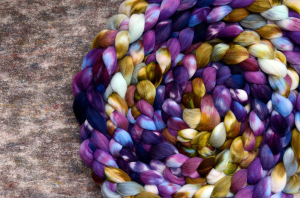 This month’s club is dyed on an 80/20 Merino wool/Tussah silk blend. It’s as soft as you imagine. Use this for next-to-skin items. Spin a fine yarn for shawls, a chunky one for hats, or make the most special baby items ever.